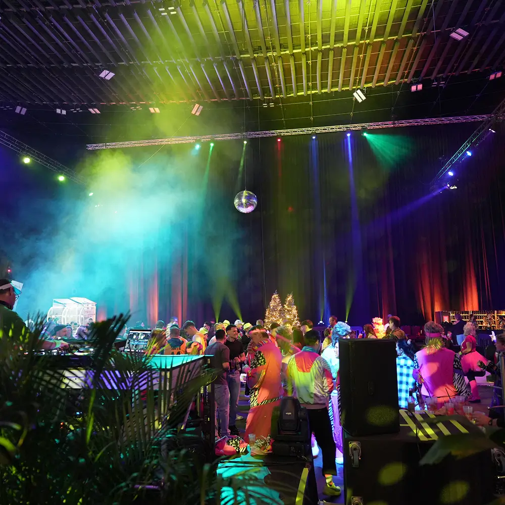 Präzise Inszenierung durch eigenes Expertenwissen Erst das richtige Licht macht Atmosphäre greifbar. Mit unserem hauseigenen Eventtechniker und professionellem Equipment setzen wir gezielte Akzente, um Architektur zu betonen und Stimmungen zu lenken. Durch das Zusammenspiel von Licht, Farbe und Materialität verwandeln wir jede Location in eine exklusive Erlebniswelt, die Professionalität und Wärme ausstrahlt.