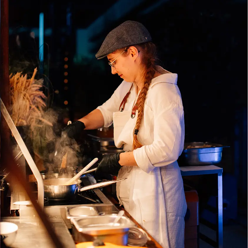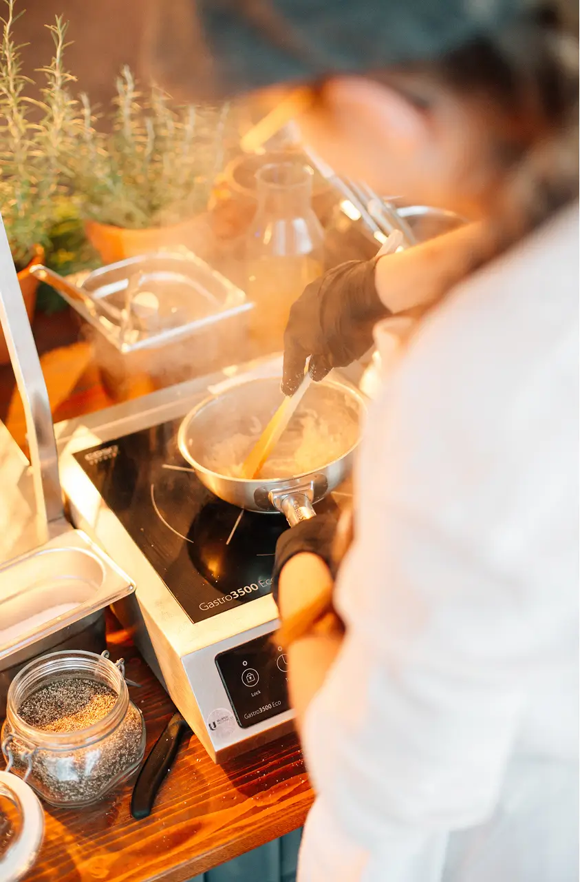 Wir bringen die Küche mitten ins Geschehen und machen das Kochen zum Erlebnis. Von saftigen Fleischspezialitäten vom Grill über frische Pasta bis zu Gerichten aus fernen Ländern – alles abgestimmt auf das Thema deines Events. Unsere Köche stehen im direkten Austausch mit den Gästen, gehen spontan auf Allergien und Vorlieben ein und zeigen ihr Handwerk live. So wird Qualität nicht nur serviert, sondern sichtbar, spürbar und erlebbar.
